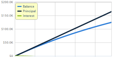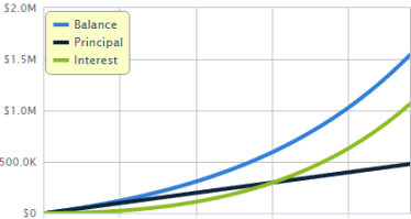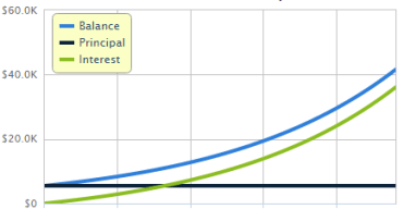 See the green interest line above? As time goes on, the interest earned on your investment accumulates more each year due to compounding and creates an exponential (not linear) growth effect.
